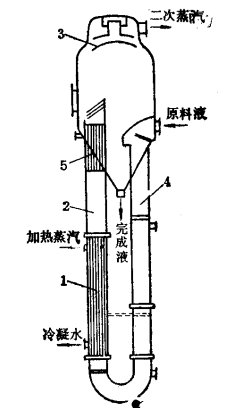 因為流速較大,所以總傳熱系數也相對的較大,阻力小,而且加熱管表面不易結垢和結晶。這種蒸發(fā)器生產能力較大,很適用于產量較高的燒堿工廠。